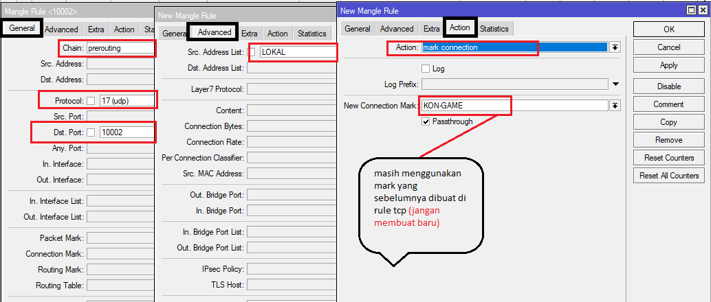 ip firewall mangleadd action=mark-connection chain=prerouting dst-port=10002 new-connection-mark=KON-GAME passthrough=yes protocol=udp src-address-list=LOKAL