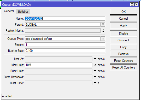 queue tree add max-limit=5M name=DOWNLOAD parent=GLOBAL priority=1 queue=pcq-download-default