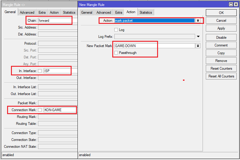 ip firewall mangle add action=mark-packet chain=forward connection-mark=KON-GAME new-packet-mark=GAME-UP out-interface=ISP passthrough=no