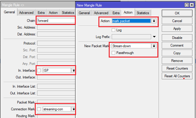 ip firewall mangle add action=mark-packet chain=forward in-interface=ISP new-packet-mark= Stream-down passthrough=no