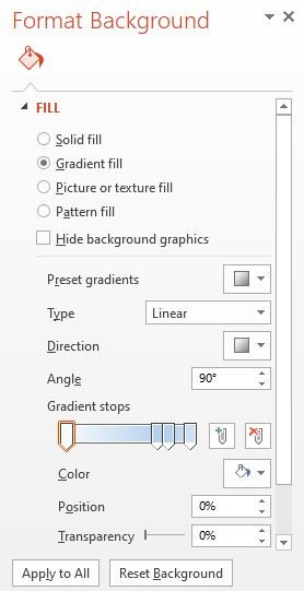 *Solid Fill, Di bagian ini kamu bisa mengisi Background dengan Warna dan Transparansi. Jadi Warna dari Background bisa di rubah kemudian diberikan Effect Transparansi.*Gradient Fill, Digunakan untuk membuat dan memberikan Effek warna Gradasi.