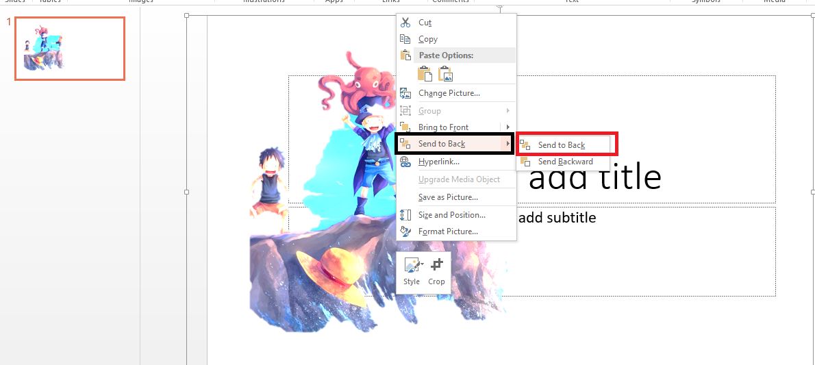- Kemudian Klik Kanan di Gambar > Send To Back > Send To Back.