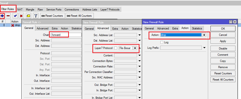 ip firewall filter add chain=forward layer7-protocol=File-Besar action=drop