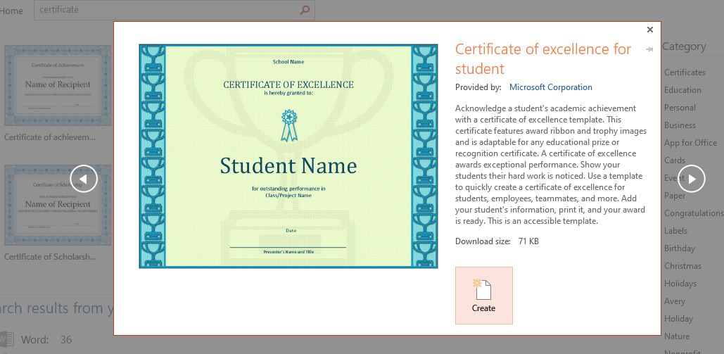 Perhatikan Gambar di atas, di bagian Education > Certificate terdapat banyak Template Sertifikat yang bisa langsung digunakan.