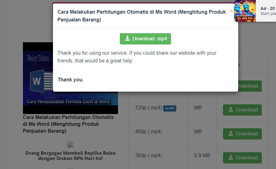 Nah itu merupakan langkah-langkah untuk Download dan Convert Youtube to mp4 Tanpa Aplikasi. Cara ini juga bisa digunakan untuk Converter Mp3, jadi kamu akan lebih menghemat Kuota dalam menikmati Video Youtube.