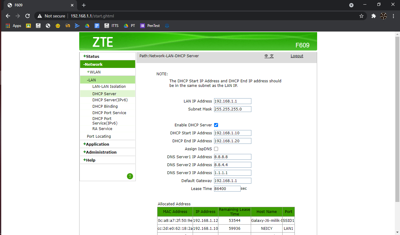 Untuk mengatasi itu kita bisa merubah DNS yang digunakan router indihome, terutama router ZTE F609 menjadi DNS dari pihak ketiga. Caranya:
