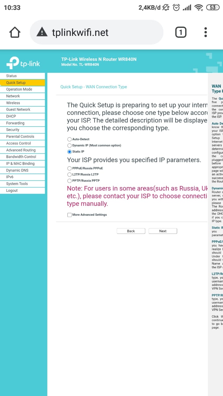 setelah kita memabahas bagaimana cara setting dhcp, ppoe dan voucher, kali ini kita akan membahas bagaimana caranya jika penyedia layanan internet hanya menyediakan layanan internet menggunakan ip statik dan kita harus menyediakan alat-alatnya dirumah. Gampang saja kita bisa menggunakan kabel lan/fo ditambah dengan Tp-link wr840 untuk jaringan wifinya. untuk menyettingnya cukup menggunakan smartphone, caranya: