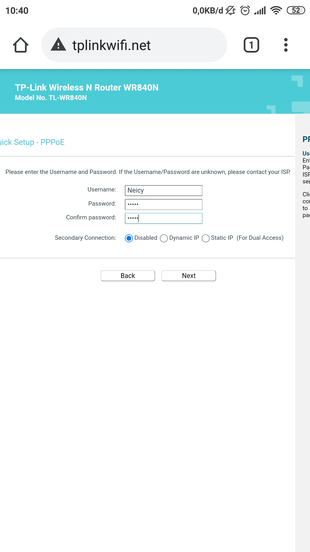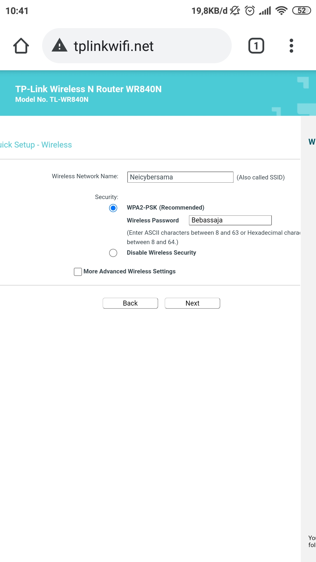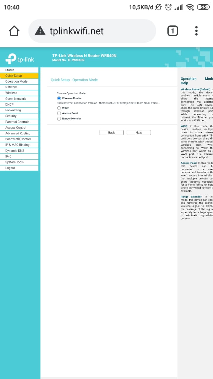 kita akan coba praktekan sebagai gambaran nanti jika kalian ingin menggunakan tl-wr840 sebagai PPPoE client, tidak perlu menggunakan PC/laptop untuk menyetingnya cukup menggunakan hp/smartphone. Caranya: