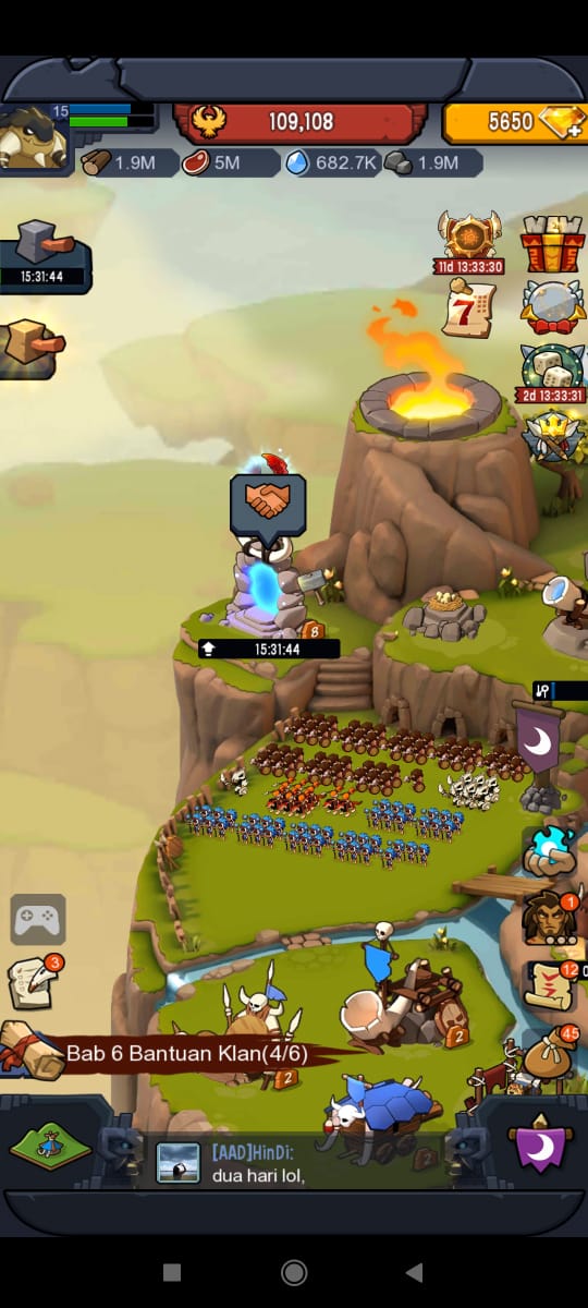 Apa manfaat bergabung dengan Klan? Kamu bisa mempercepat pembangunan, Pelatihan ataupun penelitian dengan bantuan teman di Klan. Selain itu, Kamu juga bisa belanja di toko khusus Klan. Ketuk Icon “Berjabat tangan” untuk meminta bantuan kepada rekan 1 klan.