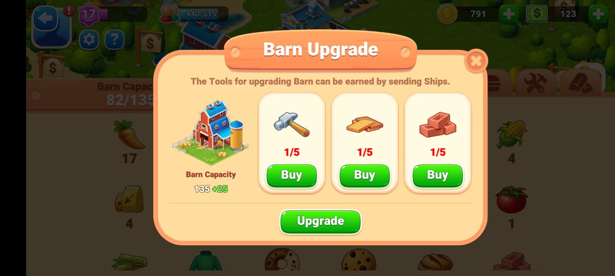 Upgrade Gudang Penyimpanan adalah hal yang sangat penting untuk dilakukan. Kamu bisa menyimpan banyak bahan bangunan, Hasil panen ataupun produk pabrik disana. Dengan kapasitas yang sangat luas, Maka kamu bisa menyimpan persediaan untuk pesanan di masa yang akan datang.