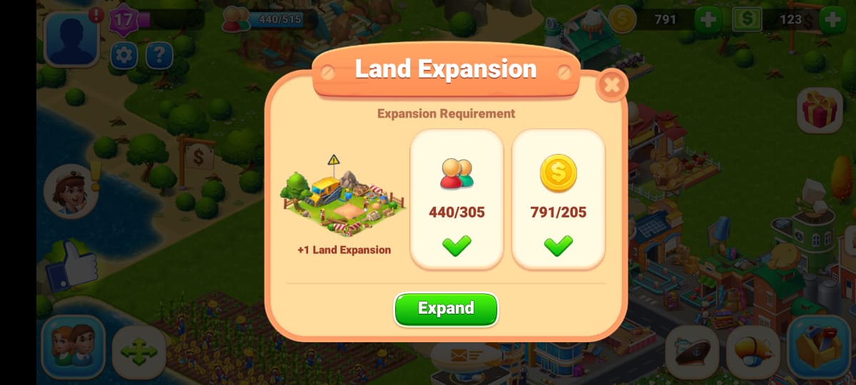 Kamu bisa membeli Tanah untuk memperluas Kota dan Kebun-mu. Lahan tersebut bisa di beli setelah kamu menyelesaikan beberapa syarat seperti memiliki banyak warga dan bangunan. Jadi setiap Level yang kamu lalui memungkinkan kamu untuk memperluas setiap sudut kota-mu.