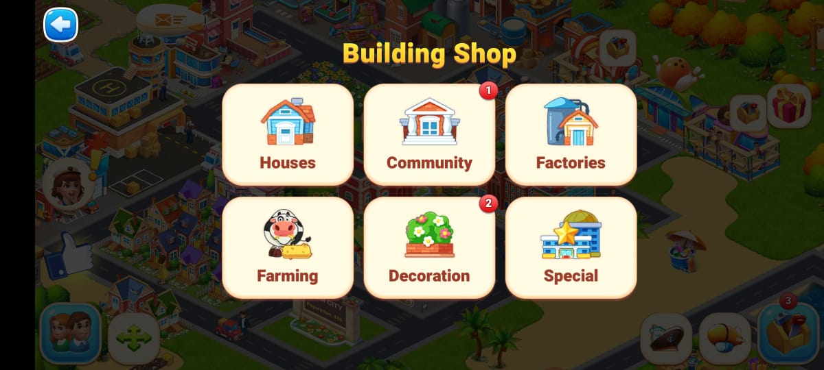 Setelah Mengatur Tata Letak Kota. Kamu bisa membangun kota dengan menambahkan Rumah, Fasilitas kota, Lahan bertani, Pabrik ataupun Kandang Ternak. Di setiap Level-nya akan terbuka bangunan baru yang bisa di beli. Namun perlu di ingat bahwa ketika kamu membangun Rumah, Maka Fasilitas Kota harus di utamakan. Jadi Untuk membangun Rumah, Kamu memerlukan Fasilitas Kota yang cukup.