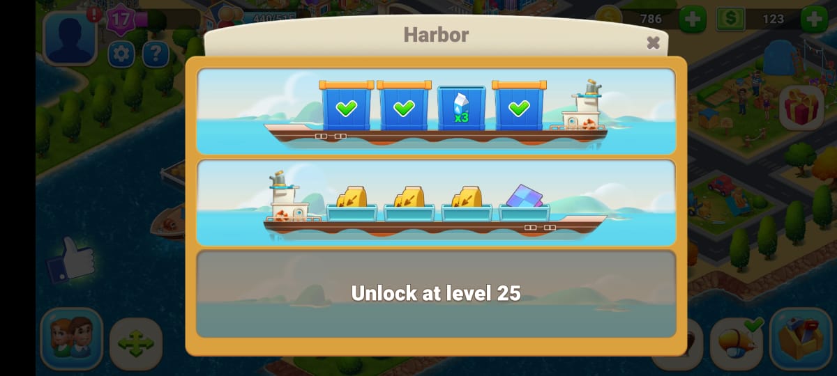 Dengan menggunakan Harbor, Kamu bisa mengirim hasil panen dan pabrik dengan imbalan Material / Bahan untuk pembangunan. Jadi kamu cukup memasukan setiap pesanan ke dalam Harbor, Setelah itu tunggu kapal kembali dan ambil semua material yang di dapatkan.