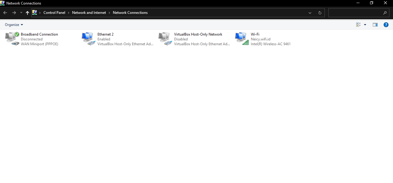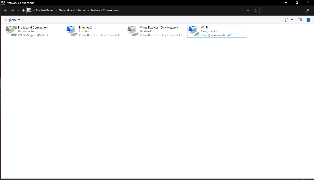 - ketikan (ncpa.cpl) tanpa tanda kurung