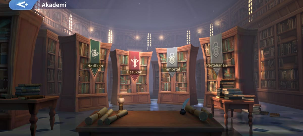 Kamu bisa melakukan Penelitian terhadap semua unsur yang ada di kerajaan. Dari mulai Pernghasilan (Perekonomian/Penghasilan), Pasukan, Immortal dan Pertahanan. Dengan melakukan penelitian di Akademi, Maka semua unsur yang ada di kerajaan akan semakin meningkat dan memiliki level yang lebih tinggi lagi.