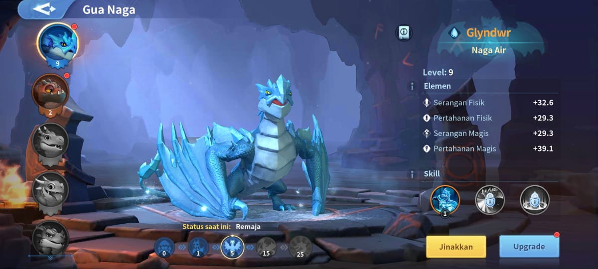 Kamu akan mendapatkan Naga setelah menyelesaikan Misi tertentu. Naga tersebut bisa digunakan untuk bertarung dan masuk ke barisan Formasi Pasukan Kerajaan. Jika Naga yang kamu miliki sangat kuat, Maka semua musuh bisa dengan mudah di kalahkan. Untuk itu, Tingkatkan Level Naga di kerajaan-mu.