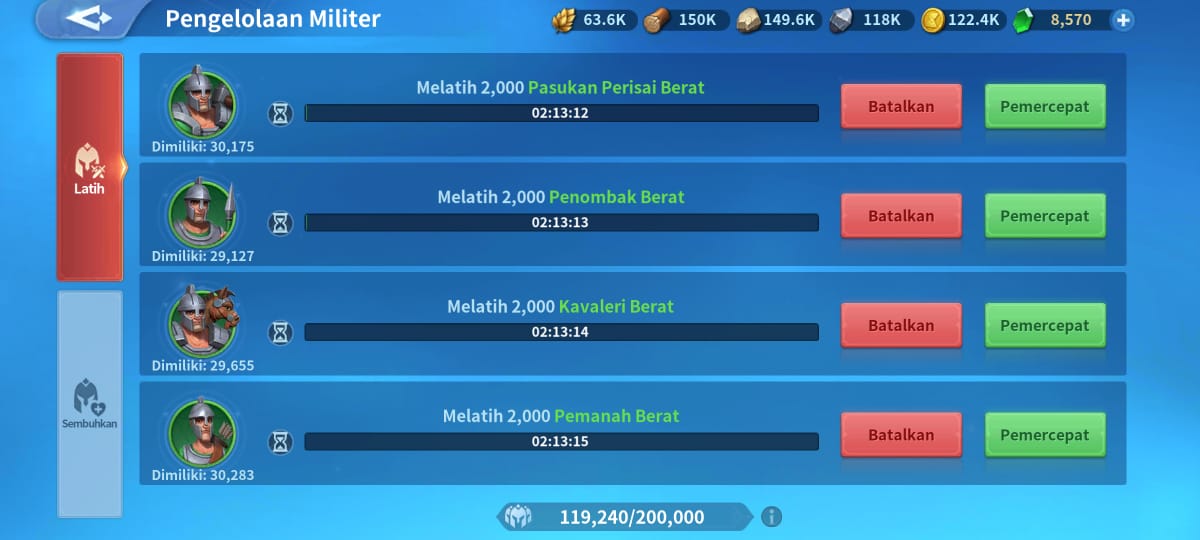Latih Pasukan Militer sebanyak mungkin untuk memperkuat daya serang dan pertahanan. Usahakan di setiap waktu di lakukan pelatihan untuk setiap regu militer yang ada. Dengan begitu, Pasukan Militer Kerajaan akan semakin banyak dan kuat.