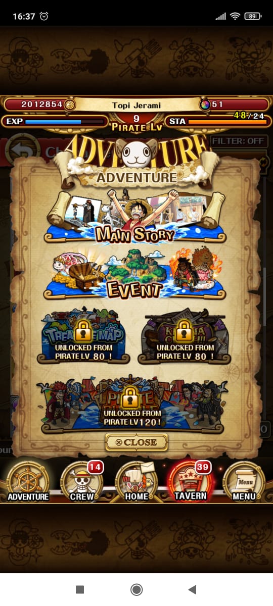 Selesaikan Petualangan kamu di Mode Adventure. Disana ada Main Story, Event, dan Beberapa Mode lagi yang terbuka ketika kamu mencapai Level Tertentu. Nah dalam Perjalanan ini kamu akan mendapatkan banyak Hadiah serta menghadapi musuh yang sangat kuat. Selain itu, Kamu juga akan mendapatkan Karakter Baru di Setiap Stage atau Alur Ceritanya.
