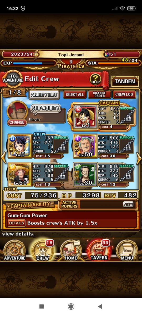 Akan ada banyak Karakter yang bisa kamu gunakakan. Namun penulis sarankan untuk melakukan Power-Up karakter Favorite yang sangat Kuat (Memiliki Skill yang kuat) dan kemudian menjadikan semua karakter terkuat menjadi Crew untuk bertarung.