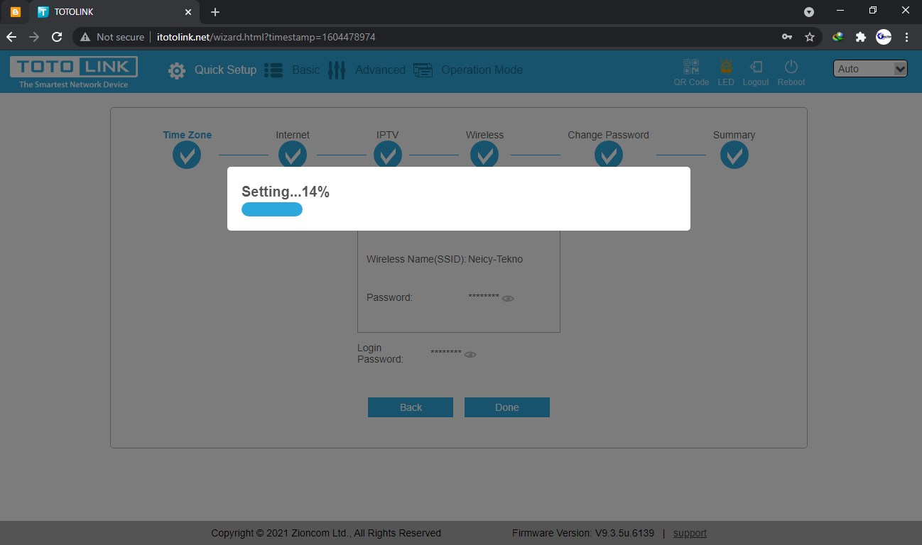 7. Disini kita setting SSID/nama wifi beserta passwod yang akan digunakannya, sesuaikan dengan keinginan saja