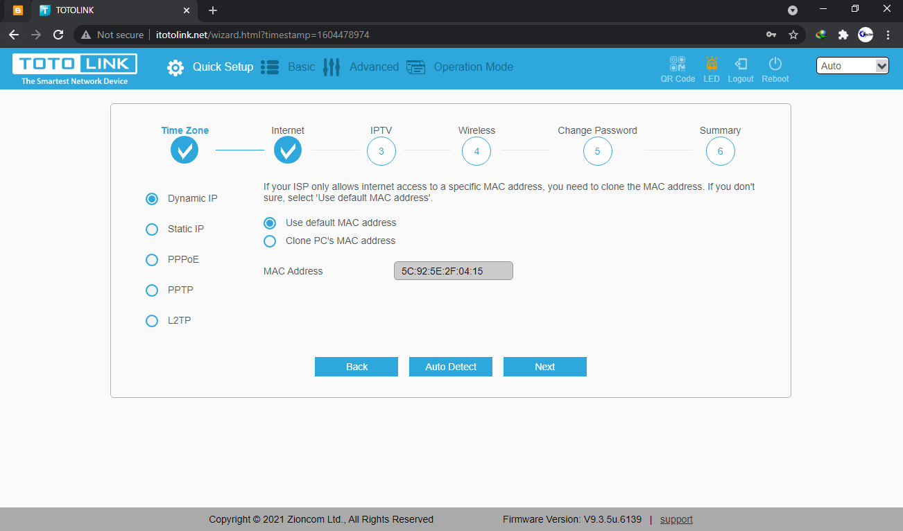 Salah satu fitur yang digunakan pada Totolink N200RE ini adalah mode Router dynamic IP/DHCP. Mode ini merupakan type koneksi yang sebenarnya tidak memerlukan settingan khusus cukup masukan Sumber Internet ke port ethernet WAN pada totolink maka otomatis akan tersambung dengan internet. Namun bisa juga kita Setting sendiri dengan cara: