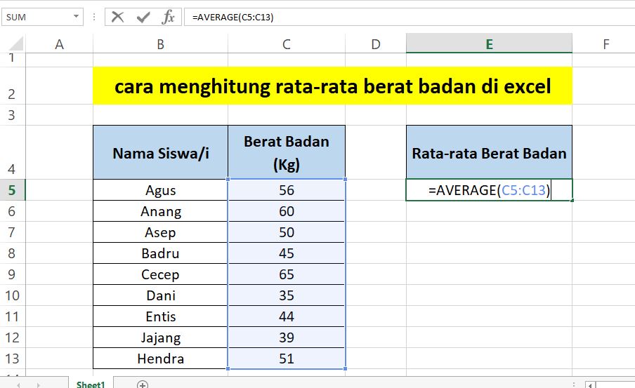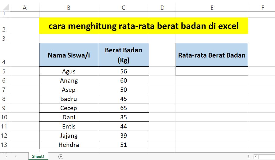 Cara Menghitung Rata-rata Berat Badan di Excel