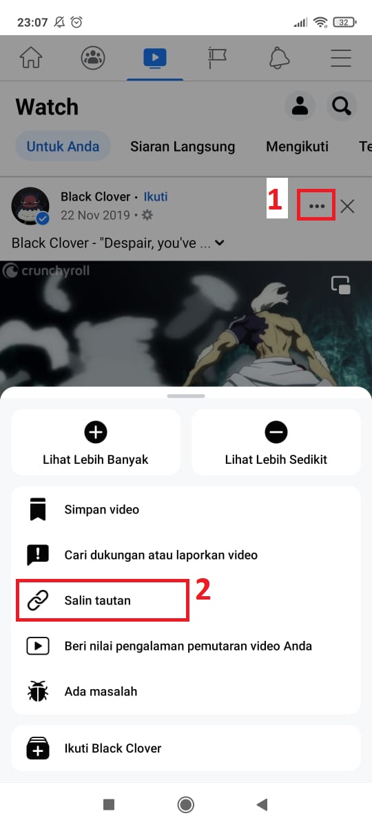 - Jika sudah menemukan Video yang di inginkan, Klik Titik 3 yang ada di sebelah kanan atas Video. Kemudian Pilih Salin Tautan. Perhatikan Gambar di bawah ini: