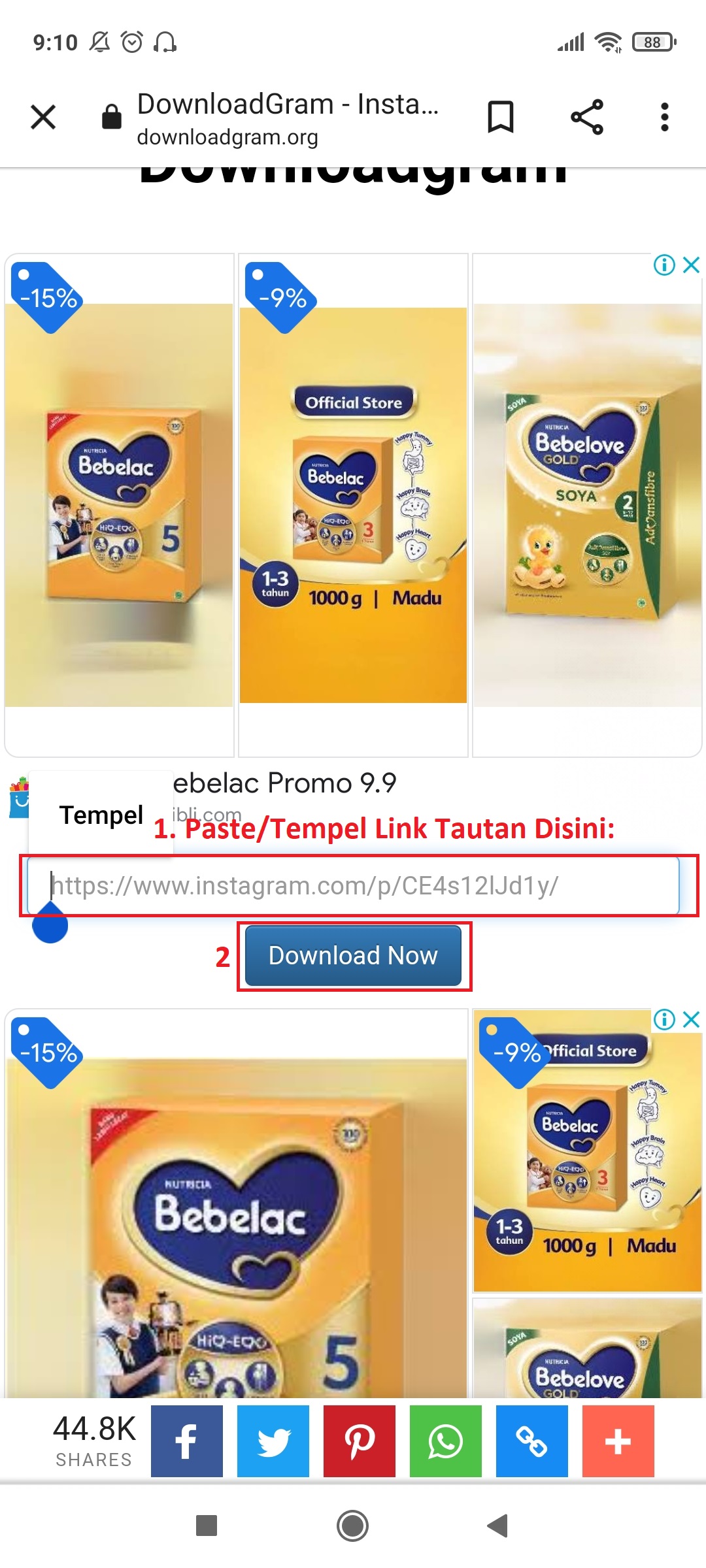 Website DownloadGram - Masuk Ke Website DownloadGram dan Tempel/Paste Link Tautan yang tadi di Salin. Kemudian tekan DOWNLOAD NOW. Perhatikan Gambar berikut ini: